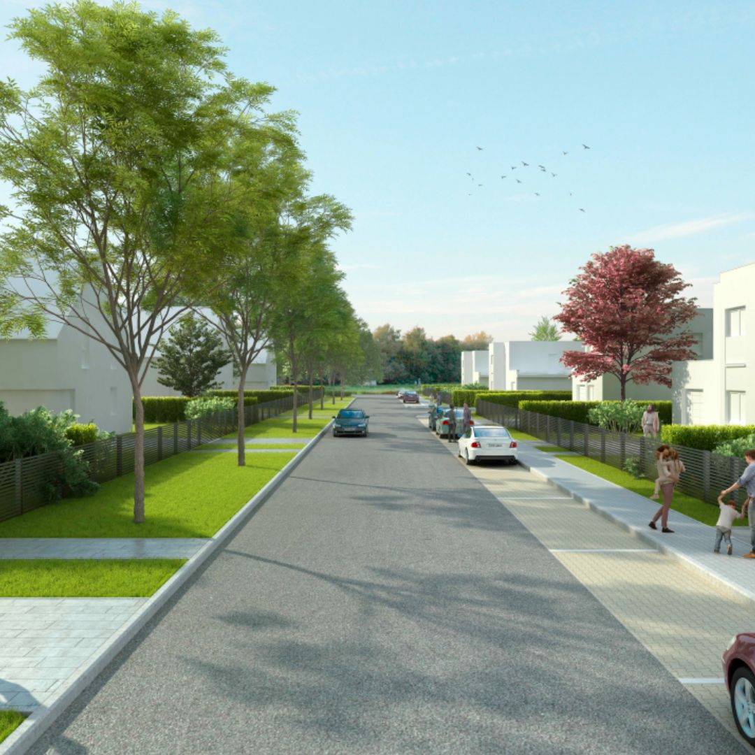 Momentálně budujeme inženýrské sítě s připojením k veřejné síti elektřiny, vodovodu a kanalizace. Následovat bude dvousměrná komunikace s podélným parkováním, chodníky a sjezdy k jednotlivým pozemkům. Samozřejmostí jsou pásy zeleně a moderní veřejné osvětlení s nízkým podílem modré spektrální složky.